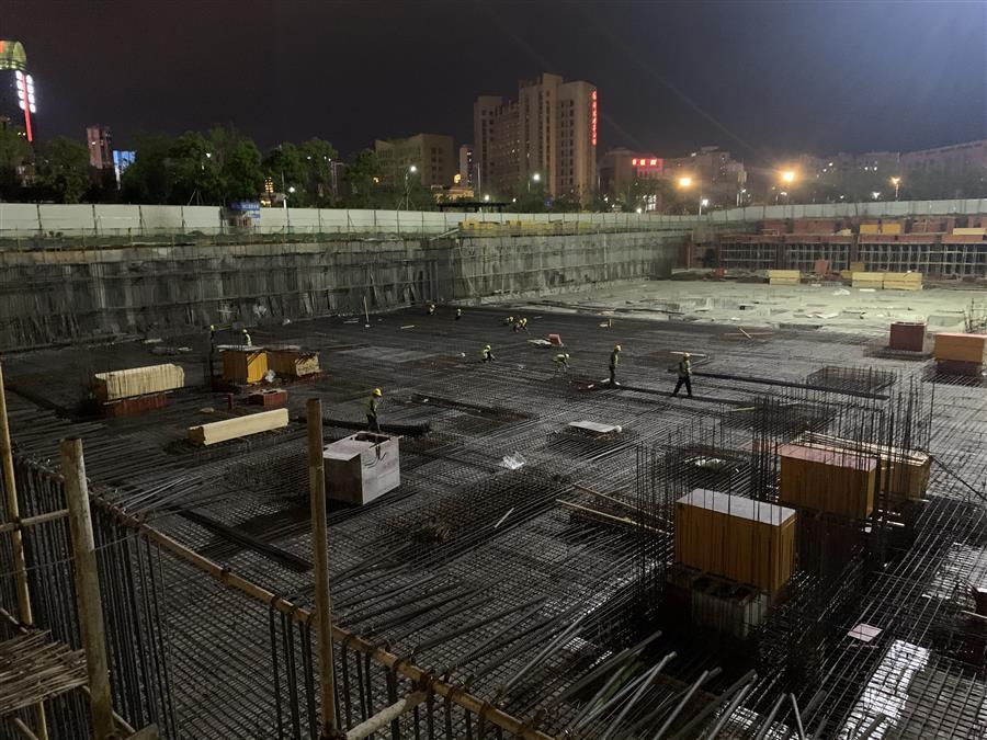 時(shí)至深夜,贛州市人民醫(yī)院新院職工交流房項(xiàng)目工作人員依舊奮戰(zhàn)在施工現(xiàn)場(chǎng),現(xiàn)場(chǎng)機(jī)械轟鳴聲、焊接切割聲交織在一起,一片熱火朝天的大干景象。目前,130余名施工作業(yè)人員全面鋪開各個(gè)工作面,底板防水施工、承臺(tái)鋼筋綁扎、磚胎膜砌筑、樁頭破除、地下室頂板架子搭設(shè)和模板安裝等工作都在有序推進(jìn),各班組都在按照計(jì)劃加班加點(diǎn)推進(jìn)項(xiàng)目建設(shè)進(jìn)度。