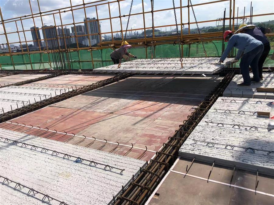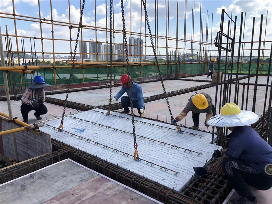 為了避開高溫時段作業(yè),項目工作人員深夜加班加點進行預制疊合板吊裝作業(yè),有效保證了施工進度,在搶抓施工進度的同時,項目部嚴把工藝質(zhì)量,嚴格按照工藝標準,逐條逐項落實每一項細節(jié)、每一道工序,確保了項目的施工質(zhì)量。