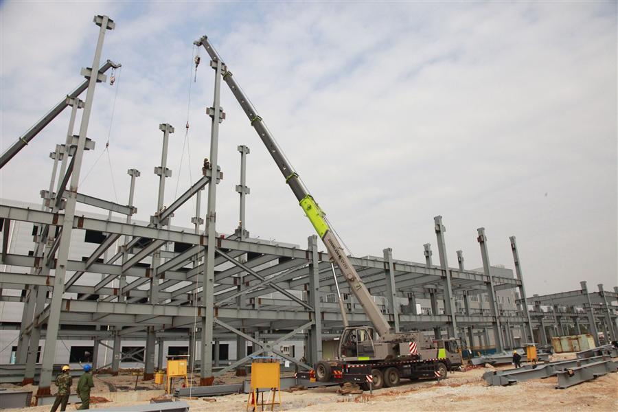 (23#、24#廠(chǎng)房鋼構(gòu)主體正在安裝)