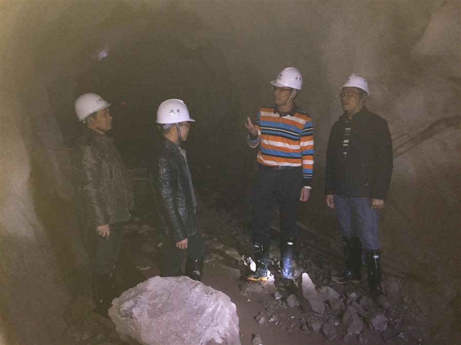(歐總經(jīng)理(右二)在隧洞掌子面了解相關(guān)情況)
