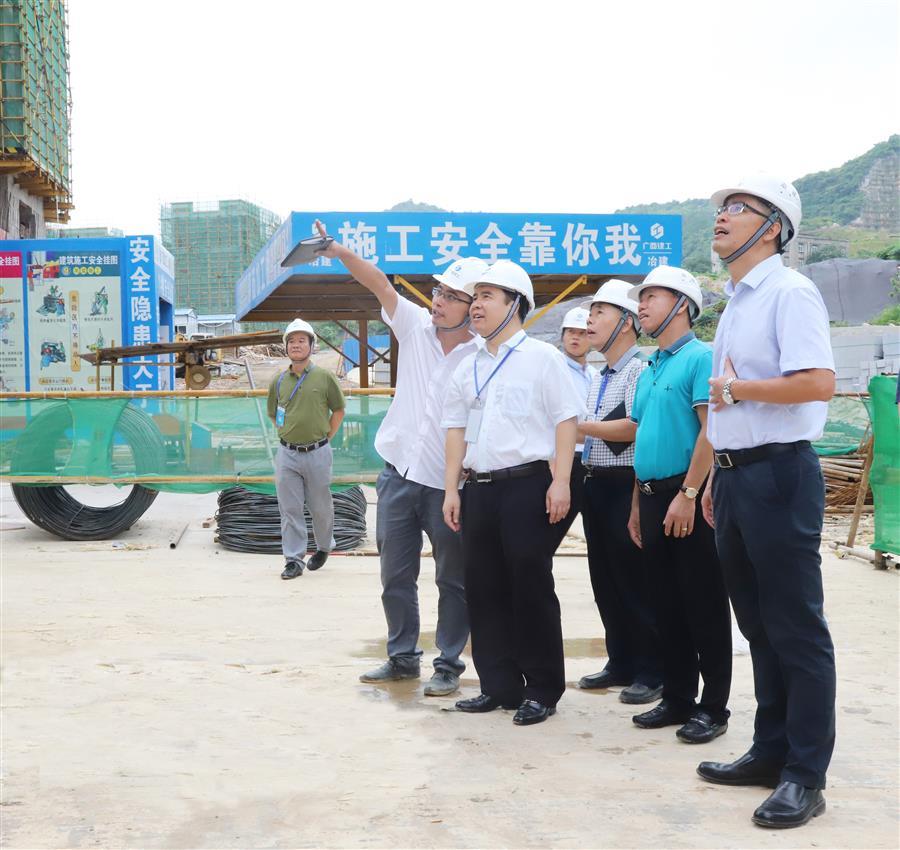 7月6日,廣西建工集團(tuán)有限責(zé)任公司副總經(jīng)理陳禮松率檢查組到廣西建工集團(tuán)冶金建設(shè)有限公司承建的麗景嘉苑1#~9#樓及地下室、社區(qū)衛(wèi)生服務(wù)中心項(xiàng)目開展2018年上半年安全生產(chǎn)大檢查,冶建公司黨委書記、董事長歐志永陪同檢查。