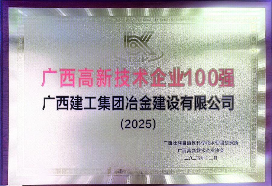 近日,廣西科技情報(bào)研究所聯(lián)合廣西高新技術(shù)企業(yè)協(xié)會(huì)正式發(fā)布2025年度廣西高新技術(shù)企業(yè)百強(qiáng)系列榜單。冶建公司憑借突出的創(chuàng)新實(shí)力、穩(wěn)健的發(fā)展質(zhì)效成功躋身榜單,充分彰顯了公司技術(shù)創(chuàng)新能力、核心競爭力與行業(yè)影響力。