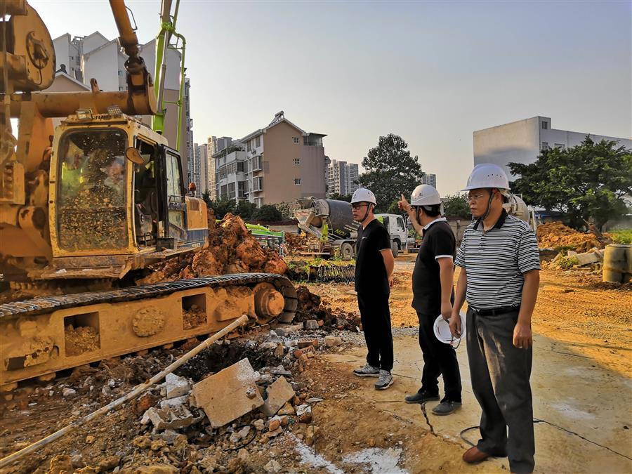 10月5日上午,桂東分公司經(jīng)理謝勇、黨支部書記黃桂軍來(lái)到柳州市防汛抗旱物資儲(chǔ)備倉(cāng)庫(kù)工程項(xiàng)目現(xiàn)場(chǎng)慰問(wèn)看望節(jié)假日仍堅(jiān)守崗位的一線員工。該項(xiàng)目施工現(xiàn)場(chǎng)地質(zhì)條件復(fù)雜,容易塌孔且地下層部分為巖石層結(jié)構(gòu),施工難度大。為確保在甲方要求的工期內(nèi)完成施工,工人們節(jié)假日仍加班加點(diǎn)搶工期。他們腳踏黃土,頭頂著炎炎烈日,揮灑著蒸騰的汗水,以實(shí)際行動(dòng)為集團(tuán)公司早日躋身世界500強(qiáng)貢獻(xiàn)力量!