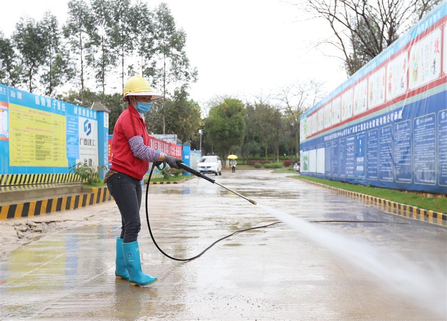 工人對項目現(xiàn)場進行清潔