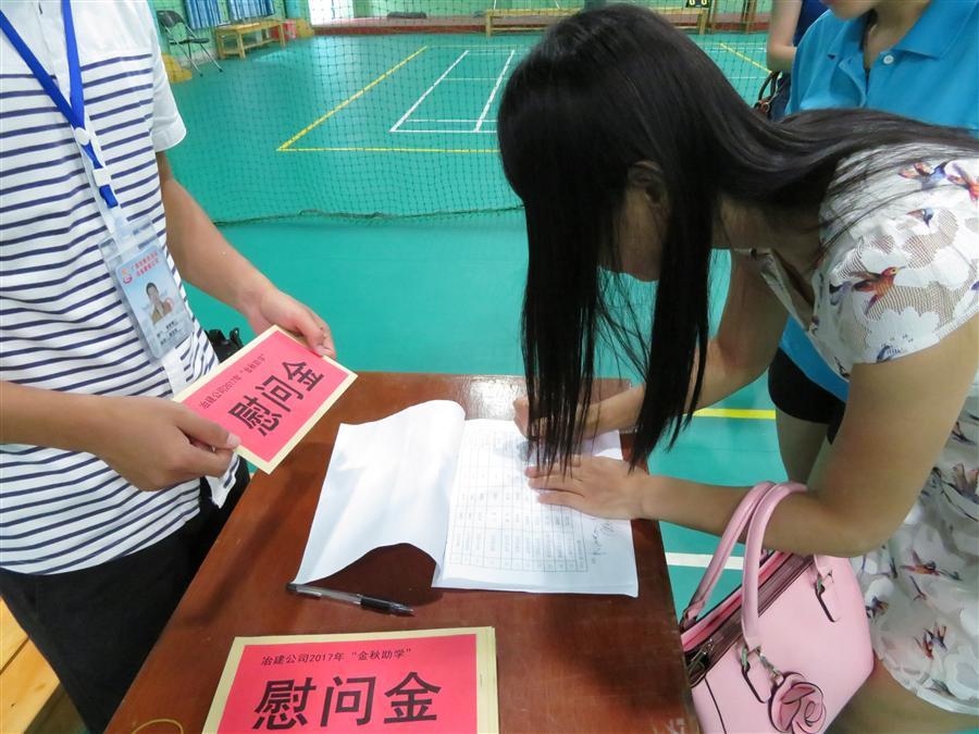 “恭喜恭喜,祝您的孩子學業(yè)有成!”9月8日下午,我司工會在公司體育館舉行“金秋助學”慰問金發(fā)放儀式。