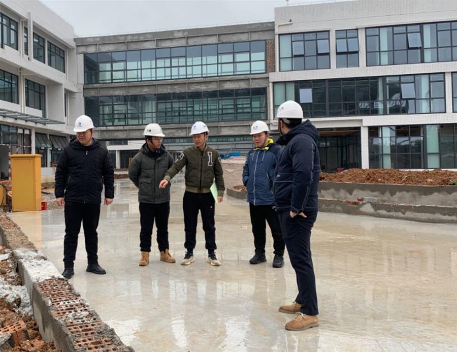 何登培(左一)到項(xiàng)目現(xiàn)場(chǎng)開(kāi)展工作