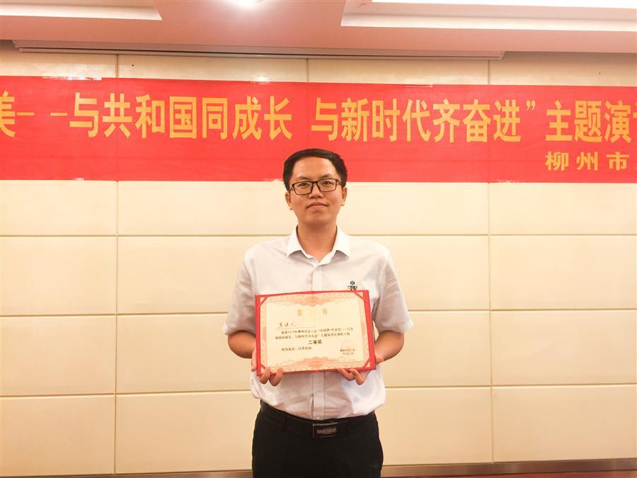 為熱烈慶祝新中國成立70周年,5月30日上午,柳州市總工會舉辦“中國夢·勞動美—與共和國共成長 與新時(shí)代共奮進(jìn)”主題演講比賽,第八分公司副經(jīng)理莫繼文代表參加并榮獲二等獎(jiǎng)。